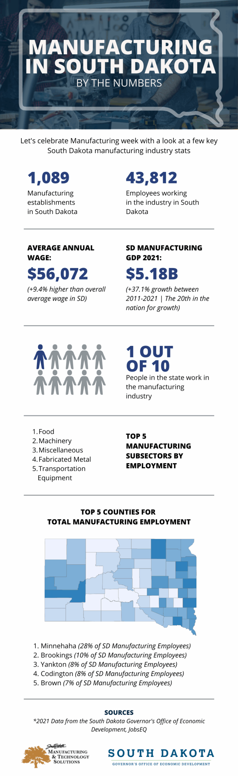 The South Dakota Governor’s Office of Economic Development and the South Dakota Department of Labor and Regulation will also be posting about the industry for Manufacturing Week during October 3-7, 2022.